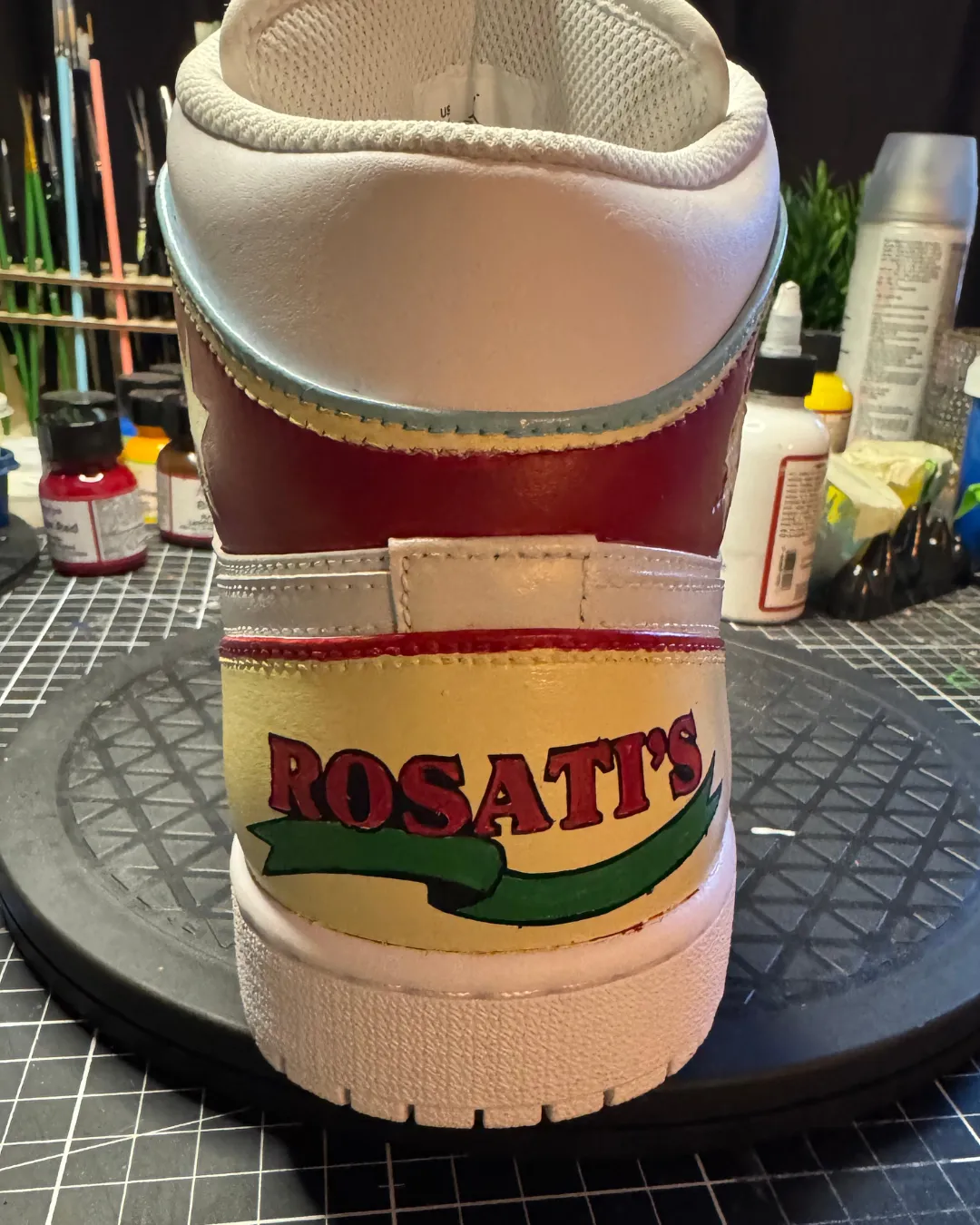 Then I prepped the shoe for painting. That means I remove the factory finish and I tape the sole to prevent getting paint on it.